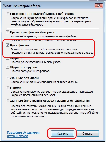 Важно: Internet Explorer не поддерживает функцию удаления отдельно взятых куки-файлов