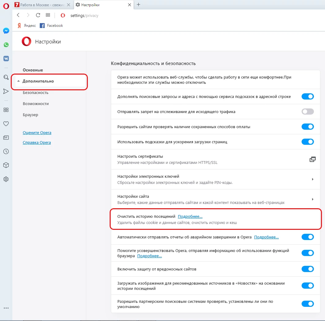 Чтобы удалить cookie в браузере Internet Explorer Opera