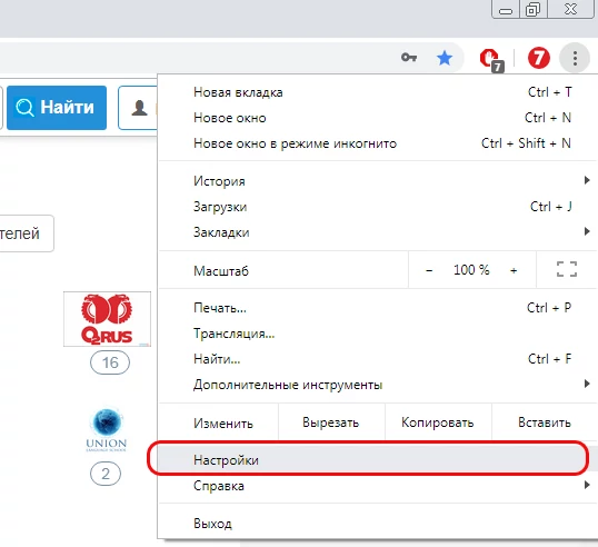 2. В появившемся списке выбреите пункт "Настройки";
